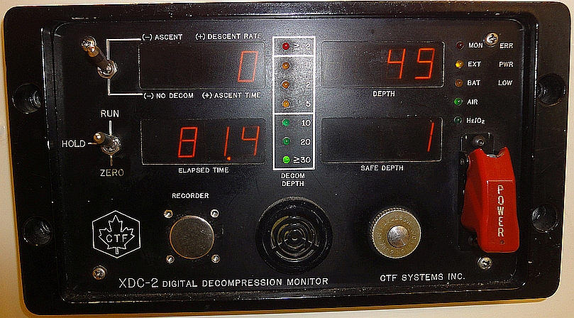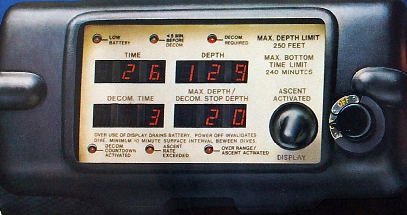 | Damaliger Werbetext zum DDC: Zur Zeit ist der DDC der einzige Tauchcomputer der Welt, der analog zur US-Navy-Tabelle alle nötigen Werte sogar für Wiederholungstauchgänge liefert. Über gut ablesbare Digital-Leuchtdioden zeigt der Computer 10 verschiedene Werte an: - Tiefe, - Tauchzeit (bis zu vier Stunden pro Tauchgang), - Zeit nach dem Tauchgang, Die an der Oberfläche nach dem Tauchen verbrachte Zeit wird bis zu zwölf Stunden lang automatisch angezeigt. - maximal beim Tauchen erreichte Tiefe, |