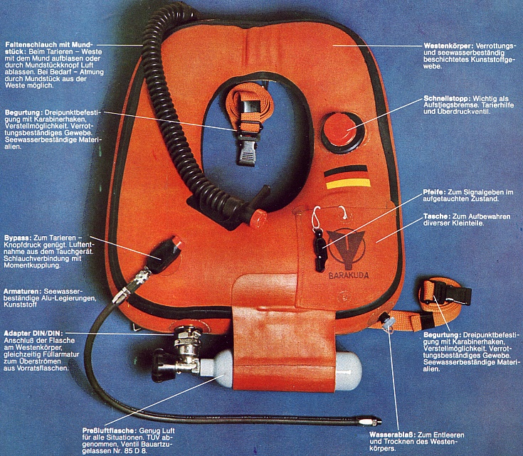 mich dieser völlig unabhängig verfügbare Luftvorrat. 300 Mark für einen gebrauchten Klodeckel mit Inflator und Westenflasche schienen mir auch günstig. Ein gebrauchtes Jacket mit Westenflasche habe ich noch nie angeboten bekommen. |