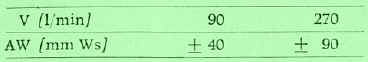 Einschlauchautomaten betragen die Werte 50 mm WS und 400 l/min. Tiefenbegrenzungen werden