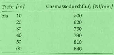 Aus dem Mindestdurchsatz wird die maximal zulässige Tauchtiefe abgeleitet: (Auszug)