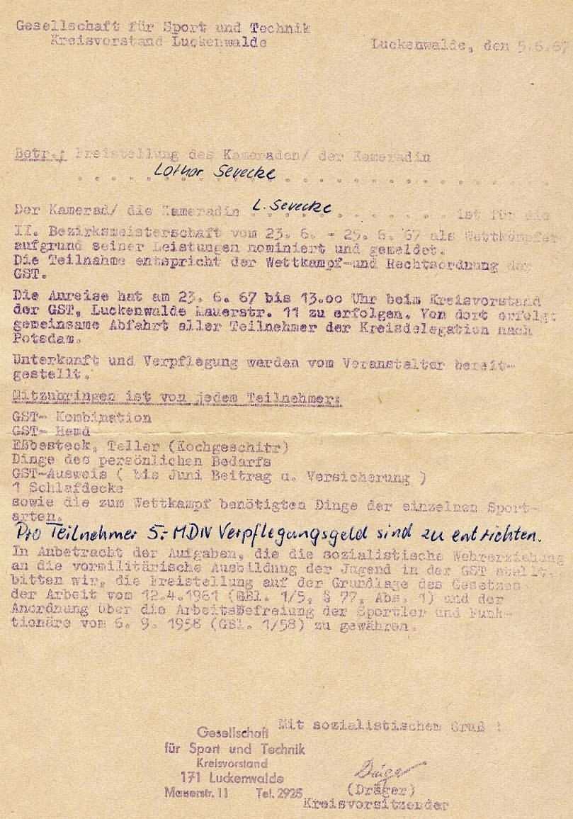 unter anderem gehörte Tauchen zu einer der Sportarten in der DDR, die legal nur im Rahmen der GST ausgeführt werden durften. Seit 1966 war ich dabei, und ohne Parteiabzeichen arbeitete ich in der AG Ausbildung beim Zentralvorstand der GST mit und war Assistent (jetzt sagt man Tauchlehrer) zu Taucherlehrgängen an der GST Marineschule in Greifswald. Natürlich alles ehrenamtlich und mit einigen Unterbrechungen wegen "politischer Untragbarkeit".