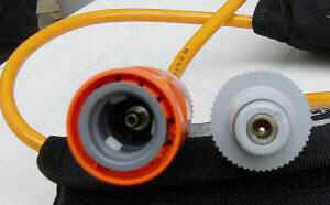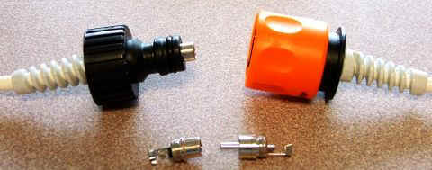 Da mir die auf dem Markt befindlichen wasserdichten Steckverbinder zu fitzlich und zu teuer waren, habe ich robuste Selbstbaustecker komponiert. Der eigentliche Stecker ist ein aus der elektronischen Meßtechnik (z.B. an Oszis) bekannter BNC-Stecker, der meist Gold als Kontaktmaterial hat (inzwischen verändert, siehe unten).Männchen und Weibchen sitzen ideal in Schlauchkupplungen für Gartenschläuche mit Nullringdichtung. Das Kabel wird wieder nach der o.g. Methode (Heißkleber und Neoprenkleber) eingeklebt und abgedichtet, eventuell zusammen mit einer Knickschutzspirale einer Kabeldurchführung. Die Steckverbindung sollte natürlich möglichst nur auf dem Trockenen geöffnet werden. Ausspülen nach dem TG und ab und zu ein bißchen Fett helfen zu langer Lebensdauer. |
