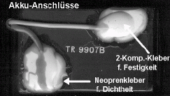 Seitenwand des kleinen Kästchens zu sehen, daß ich mit Plastikkleber auf den Akku klebe,