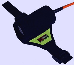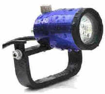 montiert). Es handelt sich um gebogenes Messing-Flachband 15mm x 2mm, das mit zwei Senkkopfschrauben nach oben in das Verbindungselement (aus PE) zum Lampenkopf zusammen gehalten wird. Der Ms-Streifen ist mit Schrumpfschlauch überzogen, so dass man die Salzwasser-Korrosion darunter nicht sieht. Mit dem Karabiner kann man sie bequem an's Jacket hängen, wenn man die Lampe nicht auf der Hand hat. |