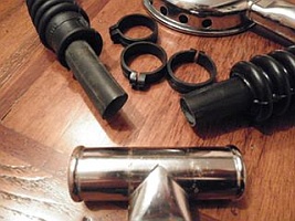 Man zieht innen ein Stück passenden Fahrradschlauchs ein. Der Faltenschlauch ist