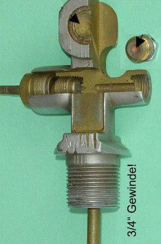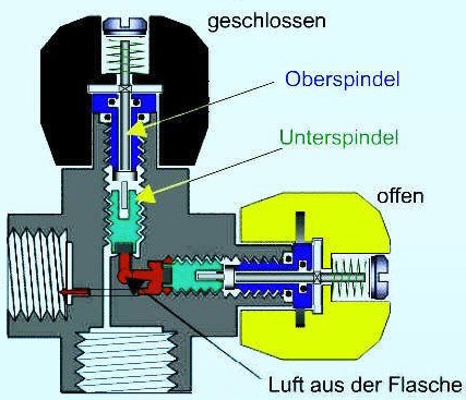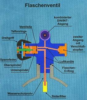 (siehe auch unten).Drehmoment: bei zylindrischem Gewinde reicht fast "handfest". Der Druck erledigt den Rest. Nur wenn Du die Flasche immer recht leer saugst und dann am Ventil Kräfte aufbringst wie z.B. Tragen am Automaten (falls man auf solche Ideen kommt), solltest Du noch mal kurz nachziehen (so ca.15° bis 30°). Achten sollte man auf den Flasche-Ventil-0-Ring. Es wäre denkbar, ihn ggf. auszutauschen. Beim Übers-Gewinde-quälen achte darauf, daß er nicht beschädigt wird. Mit konischem (manche sagen auch komischem) Gewinde ist das etwas aufwändiger, da hier beim Wiedereinbau tatsächlich ein festgelegtes Moment aufgebracht werden muß. |