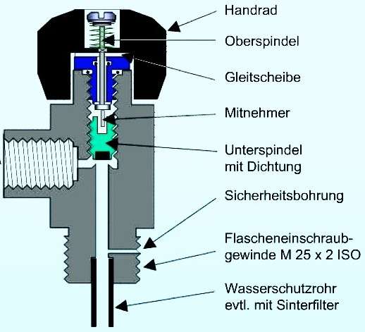 (zylindrisches Gewinde) leicht aus der leeren Flasche aus und auch wieder einschrauben