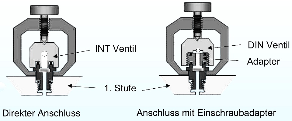 Airstopper / Slobwinder / HD-Verlängerung DIN-INT-Adapter Kombinationen Ventil/Flasche Unterschiede 200/300-bar-Ventile |