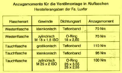 | Flaschengewinde | Anzugsmoment | Dichtung | |