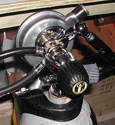 Einatemschlauch des Reglers tauscht du gegen den Ansaugschlauch des Kompressors. Der