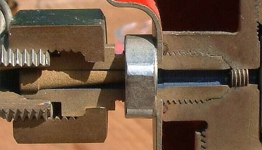 Dann löst man mit SW20 die Mutter am Gehäuse (Linksgewinde!) und dreht sie einige Windungen Richtung Überwurfmutter.