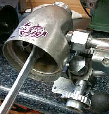 Dieser Stutzen war beim Unterwasser-Einsatz für den Anschluss der Luftversorgung über Schlauch vorgesehen. Er enthält dazu auch eine Kugel, die je nach Druckunterschied von externer Luft auf interne Luft von "umschaltet".