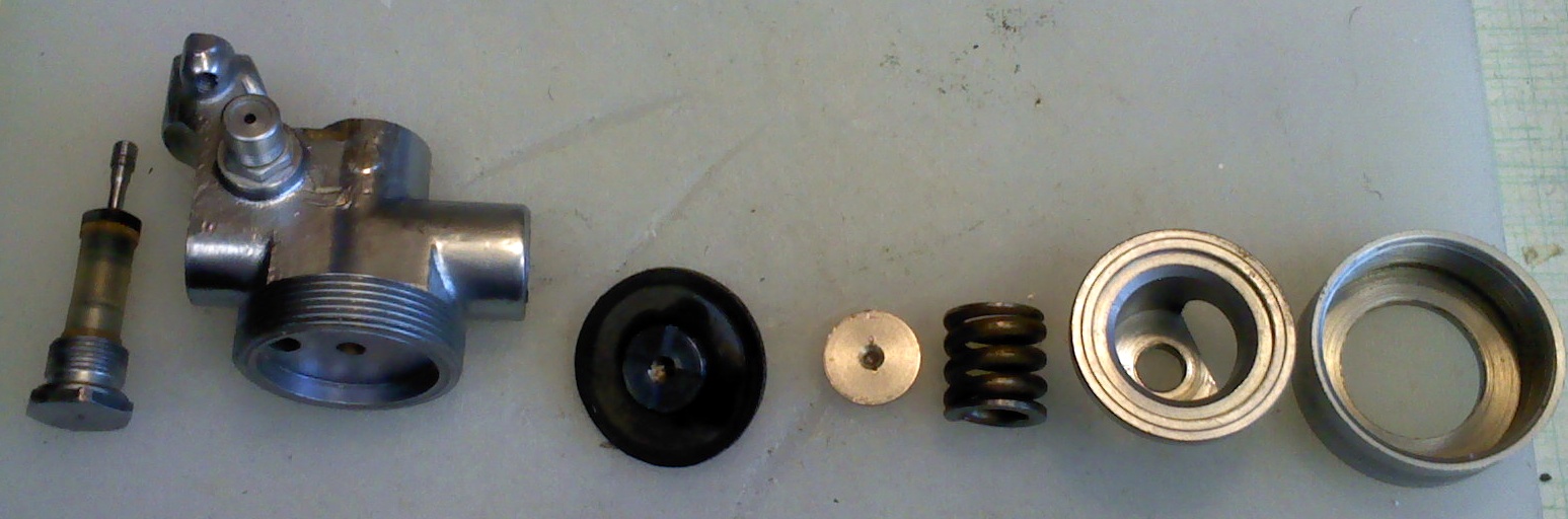 Jeroen (hydrogom.com) machte mich darauf aufmerksam, dass die Reglerteile oben (zusätzlich 2x Sinterfilteringe und 2x 0-Ringe) nicht dem ursprünglichen Loosco Ei entsprechen sondern aus dem Atemgeräte-Regler Airsafe3 für die Feuerwehr aus den 1980er Jahren stammen.