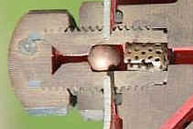 Die Dichtung erfolgt mit dem Druck. Gegen Mitteldrucksteiger ist ein Überdruckventil innerhalb des Blech-Eis in den Reglerkörper geschraubt, siehe Bild weiter unten, demontiert, neben der ausgebauten HD-Welle.