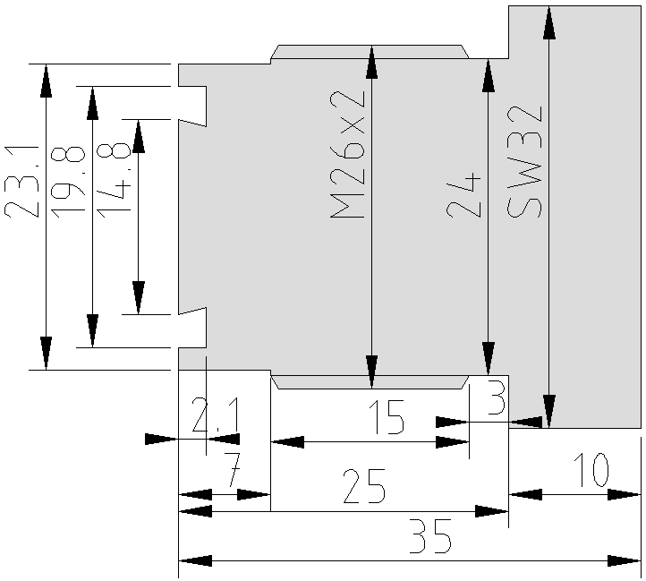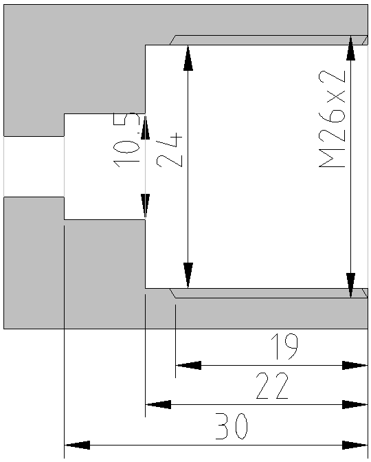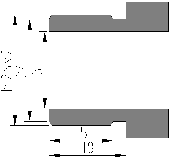 Und für die Selberdreher noch ein paar Maßzeichnungen (oben M26x2, unten G5/8")