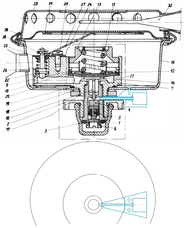 Innerhalb des Reglertopfes, wie z.B. bei der letzten Generation des Royal Mistral,