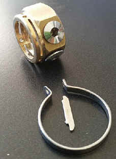 von 120° eingefrästen Schlitze gedrückt, wenn das Doppelport auf seinem Stutzen steckt.