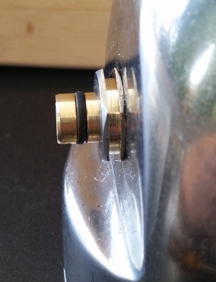 man das Gewinde ab und sticht eine Nut für einen 0-Ring ein. Das wird der Aufnahmezapfen