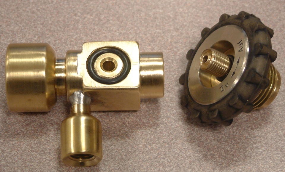 Da bei meinem D7 ein Ventil drei Abgänge hat, kann der Zweitregler dort angeschlossen werden, wo er weniger vorsteht. Eigenbau-Adapter für einstufige Regler |