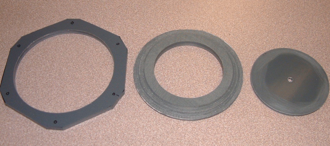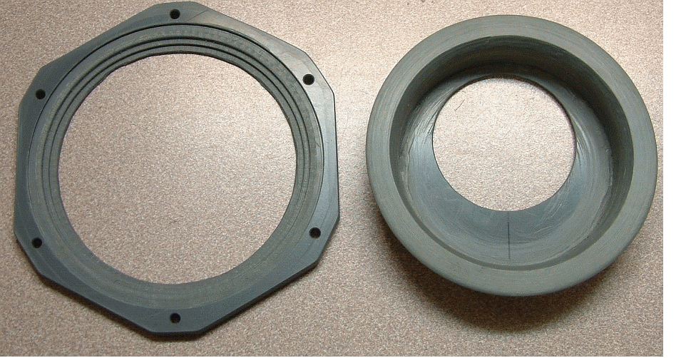 | Erste Stufe des Voit R12 Titan II mit einem HD- und einem MD-Port und einem Anschluss für eine Reserveschaltung (auch HD), die haargenau dem Unterteil des Voit R22 Titan II entspricht, aber ungleich preiswerter (etwa 30 Euro) gegenüber dem Trieste II zu erhalten ist. | Gehäuse des Royal Mistral, das schön, leicht und kleinvolumig ist, trotzdem aber eine große Membran (125 mm) ermöglicht und maßlich einigermaßen passt. |