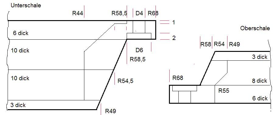 Metallkörpers in die Unterschale verwende ich die alte Plastik-Abdeckkappe der ersten